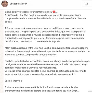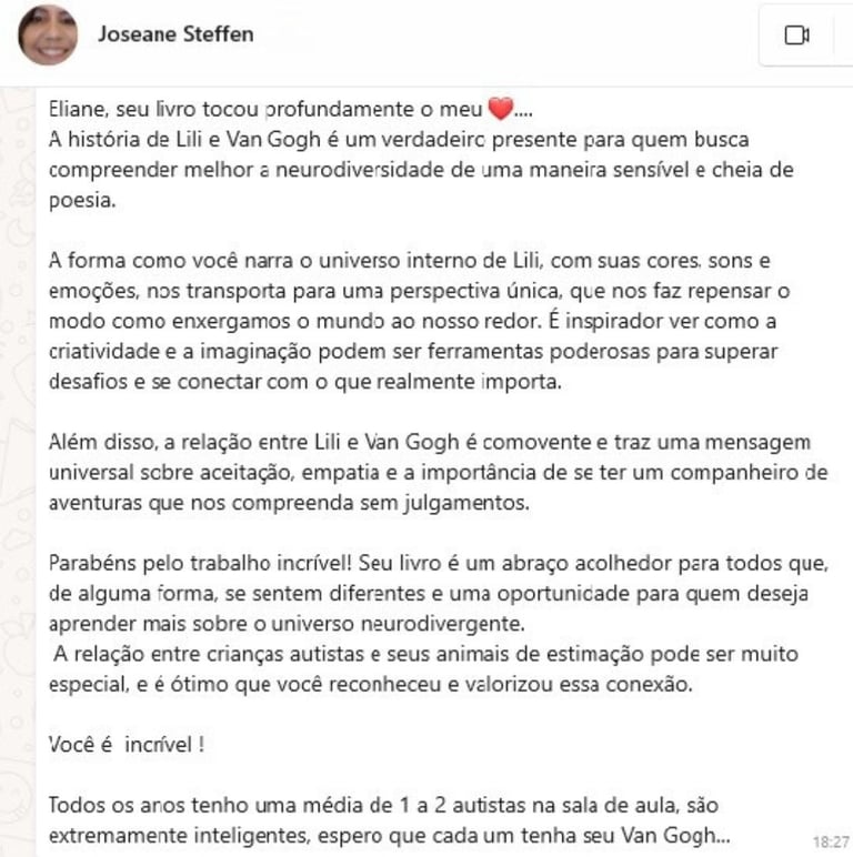 Lili encontra em Vincent Van Gogh uma inspiração profunda, compartilhando com seu cão Van Gogh a história do pintor e sua coragem de expressar emoções através da arte, mesmo sendo considerado "estranho". Sua sensibilidade única a leva a enxergar cores e significados invisíveis para muitos, refletindo sobre como as nuances do mundo, e das pessoas, muitas vezes passam despercebidas. Lili reflete sobre a insegurança e o desejo de pertencimento, encontrando no vínculo com Van Gogh (seu cão) o consolo e a aceitação que a incentivam a continuar explorando e compartilhando seu mundo.